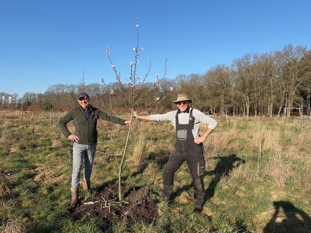 Het werd eens tijd om achter onze computers vandaan te komen en met de NMF Limburg het groen in te gaan. Geen beter moment dan een van de eerste zonnige lentedagen begin maart, om Ap Woudstra en zijn kundige en gezellige vrijwilligersploeg te helpen met de boompjes en de plantjes in zijn magnifieke voedselbos Flincke Ven.