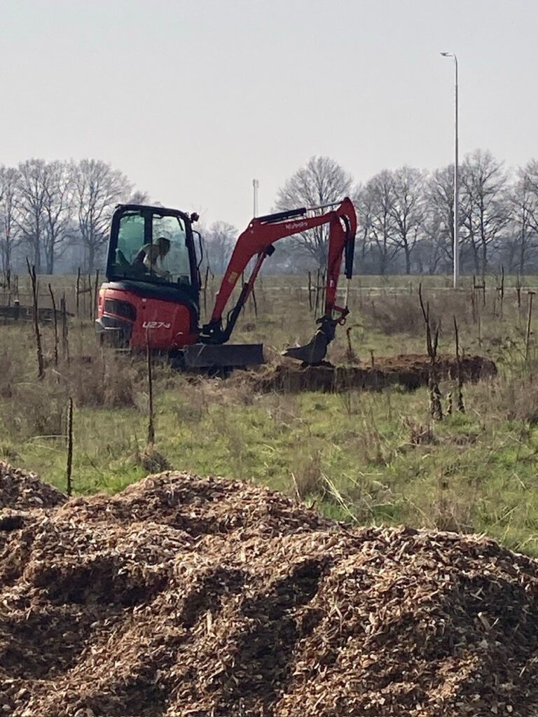 We spraken kort over dat er nog een bijenburcht in het voedselbos zou mogen worden aangelegd. Laat het maar aan Ap over om dat onmiddellijk te regelen. Nog geen week later stond er een graafmachine klaar om met de Handleiding Bijenburchten in de hand de eerste werkzaamheden uit te voeren. Met bijenburchten overal wordt Limburg een geweldig bruisende ZoemZone!