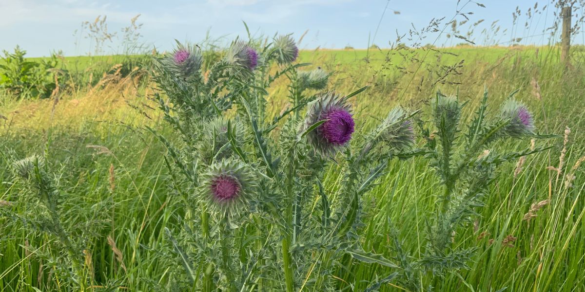 Wat vooral verwarring oproept? Dat een groot deel van het terrein “rommelig” oogt. Distels, zuring, brandnetel, spontane kruiden. “Veel mensen kunnen het niet plaatsen: is dit landbouw of is dit natuur? We zijn het niet gewend, het past niet in een hokje.”