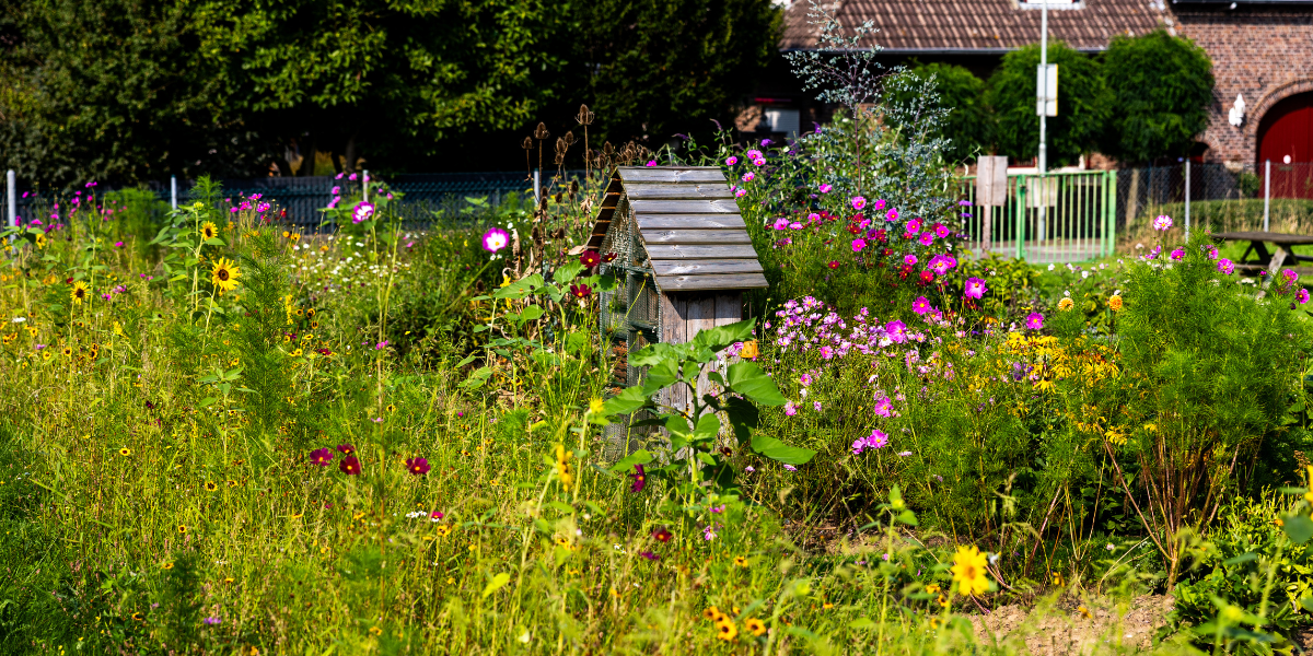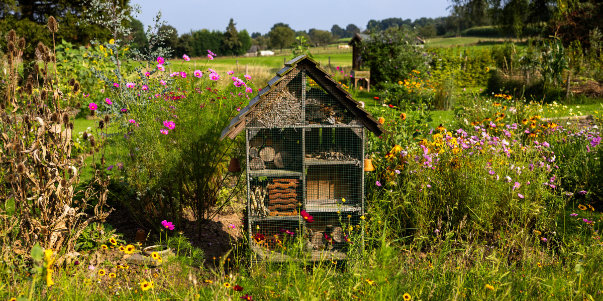 Daarnaast staat er een groot bijenhotel dat volop gebruikt wordt. “Ik vind het gewoon prachtig om te zien als het leeft. Als het gonst, als je vlinders ziet landen op wat je gezaaid hebt… Dat geeft zoveel voldoening.”
